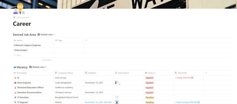 Notion Job Tracker$0+$0+https://schema.org/InStockusdMahmud Chowdhury0 ratingsTrack which Job you've applied & stop getting confused while getting interview call.Name a fair price:$I want this!Add to wishlist New wishlist